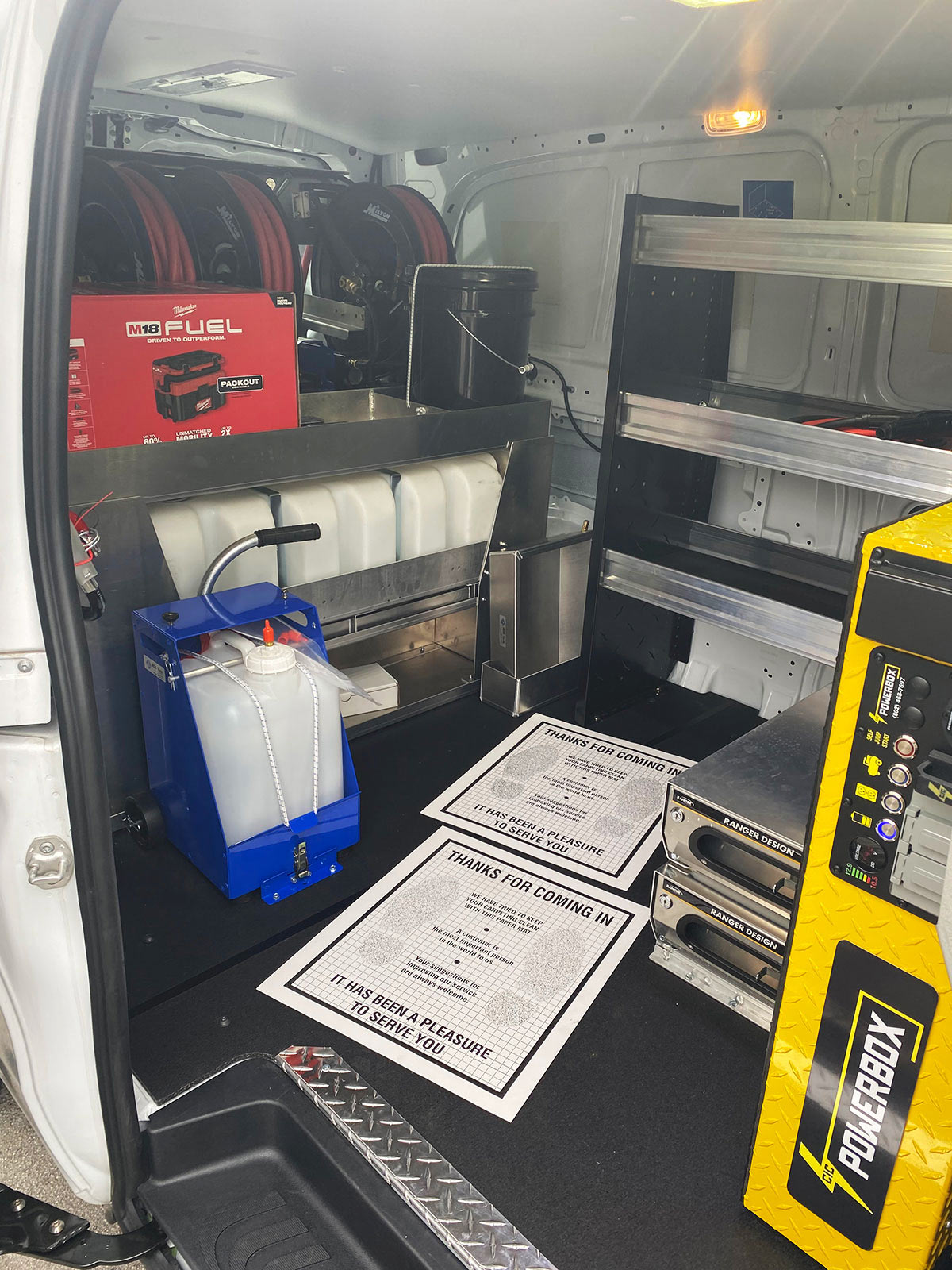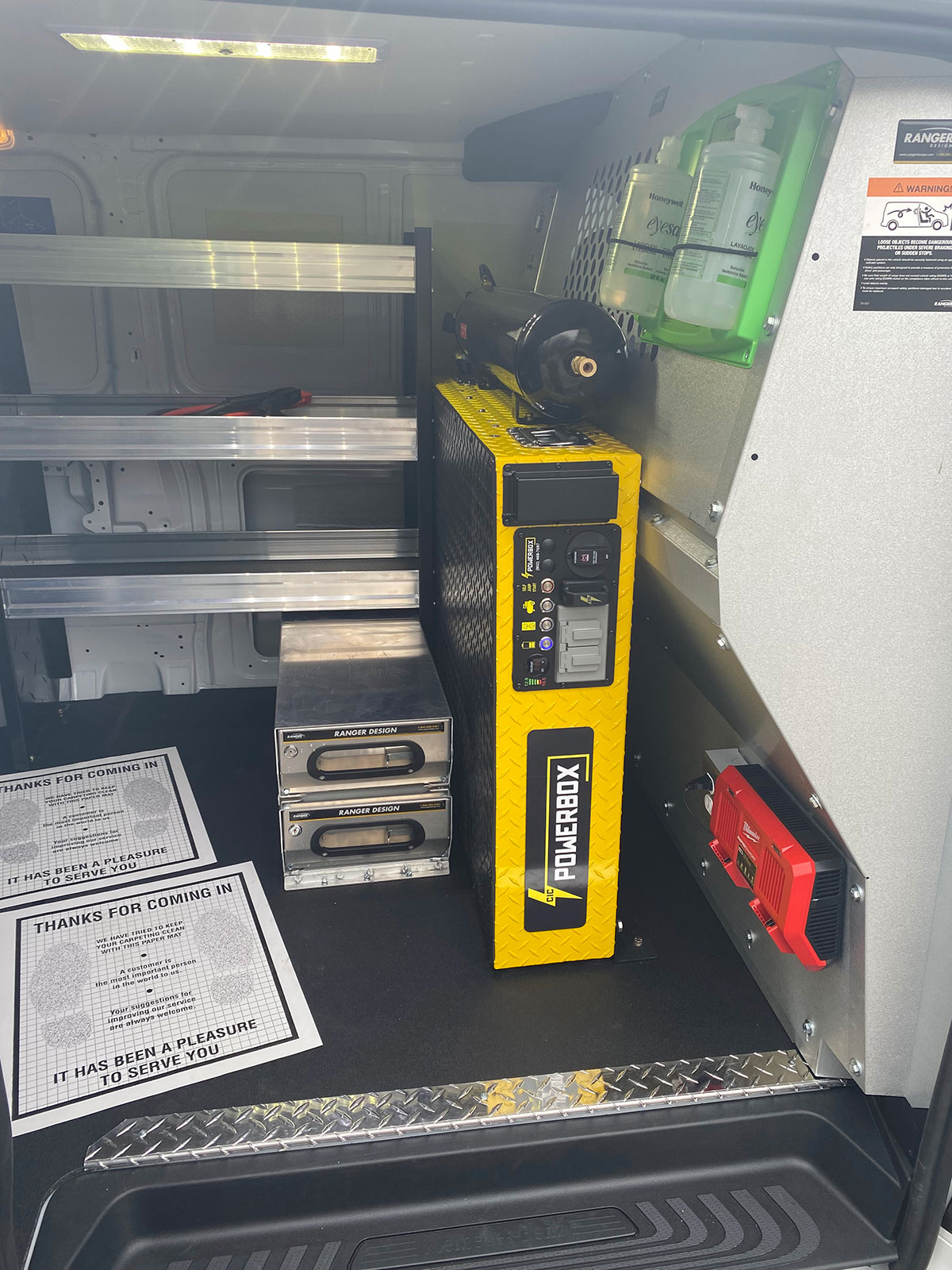 - Two (2) 36” Ranger Pull out Drawers ed on curbside wall @ side door – Tool storage