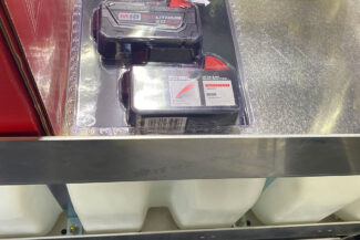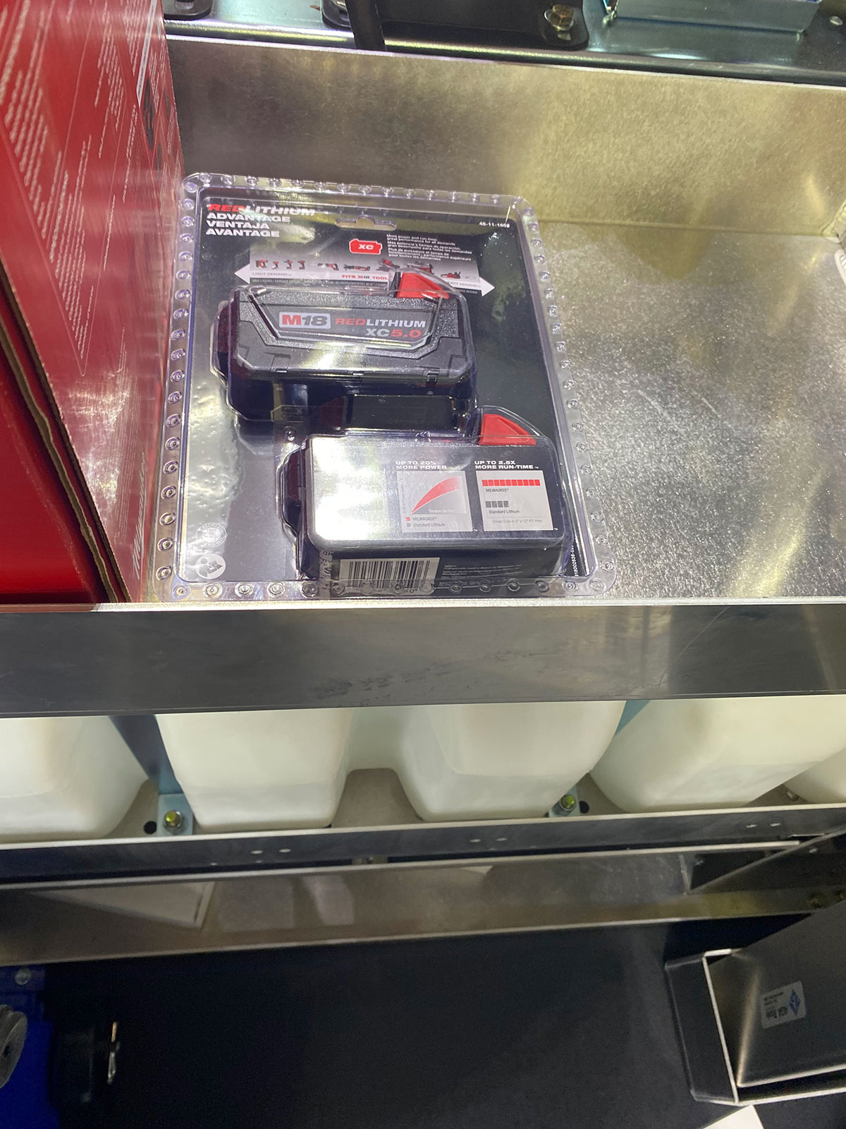- Milwaukee M18 Dual Bay battery charger on bulkhead for oil evacuation battery – charge Milwaukee battery for remote pump